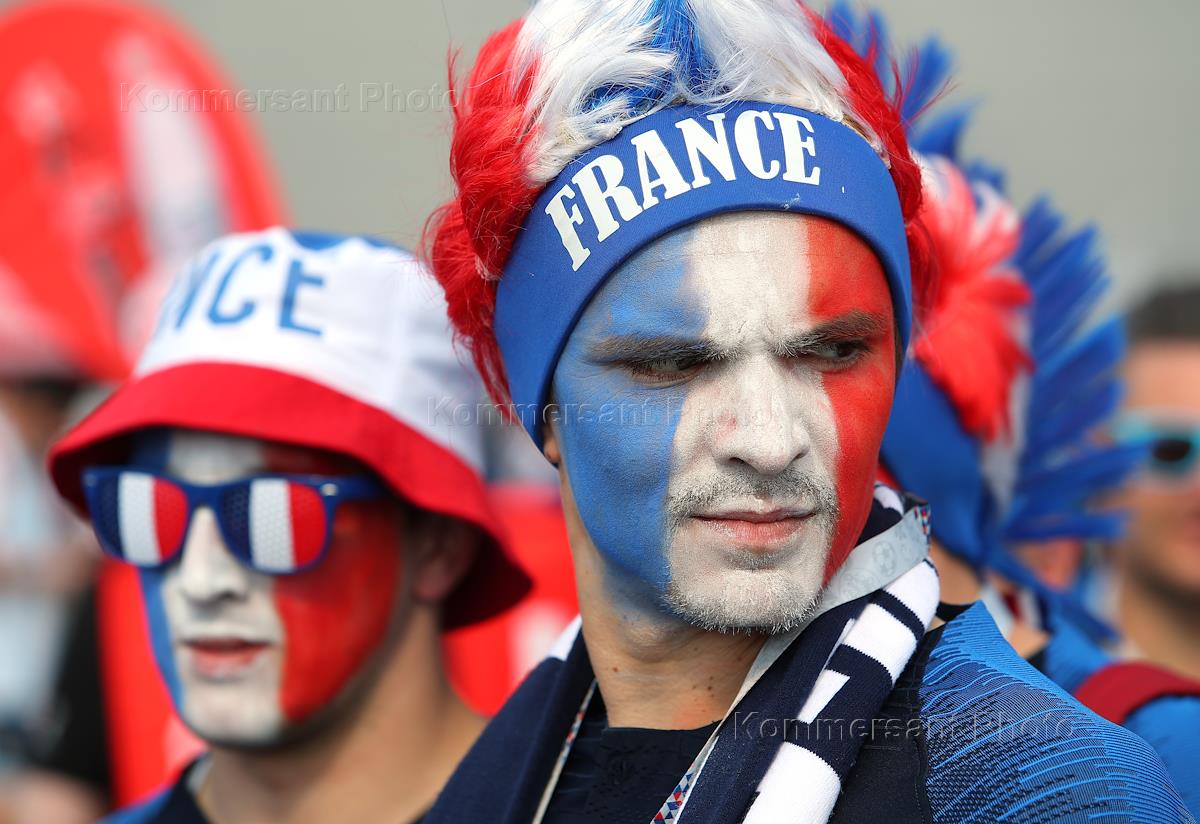 Чемпионат мира по футболу. 1/8 финала. Матч между сборными Франции и Аргентины на стадионе "Казань Арена". Французские болельщики перед началом матча.