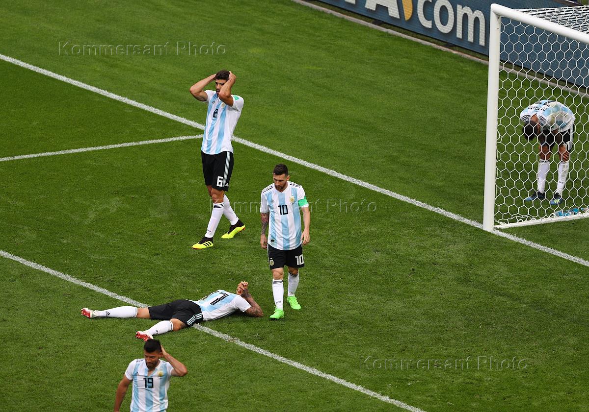 Чемпионат Мира по футболу в России FIFA 2018. 1/8 финала. Матч между сборными Франции и Аргентины на стадионе "Казань Арена". Игрок сборной Аргентины лионель Месси (в центре) во время матча.