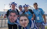 Чемпионат Мира по футболу в России FIFA 2018. 1/8 финала. Матч между сборными Уругвая и Португалии на стадионе "Фишт". Уругвайские болельщики перед началом матча.