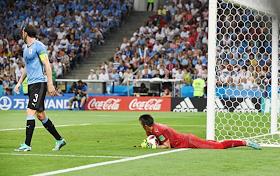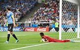 Чемпионат мира по футболу в России FIFA 2018. 1/8 финала. Матч между сборными командами Уругвая и Португалии на стадионе "Фишт". Игрок сборной Уругвая Диего Годин (слева) и вратарь сборной Уругвая Фернандо Муслера (справа) во время матча.