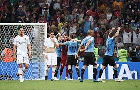 Чемпионат мира по футболу в России FIFA 2018. 1/8 финала. Матч между сборными командами Уругвая и Португалии на стадионе "Фишт". Игрок сборной Португалии Андре Силва (слева) после матча.