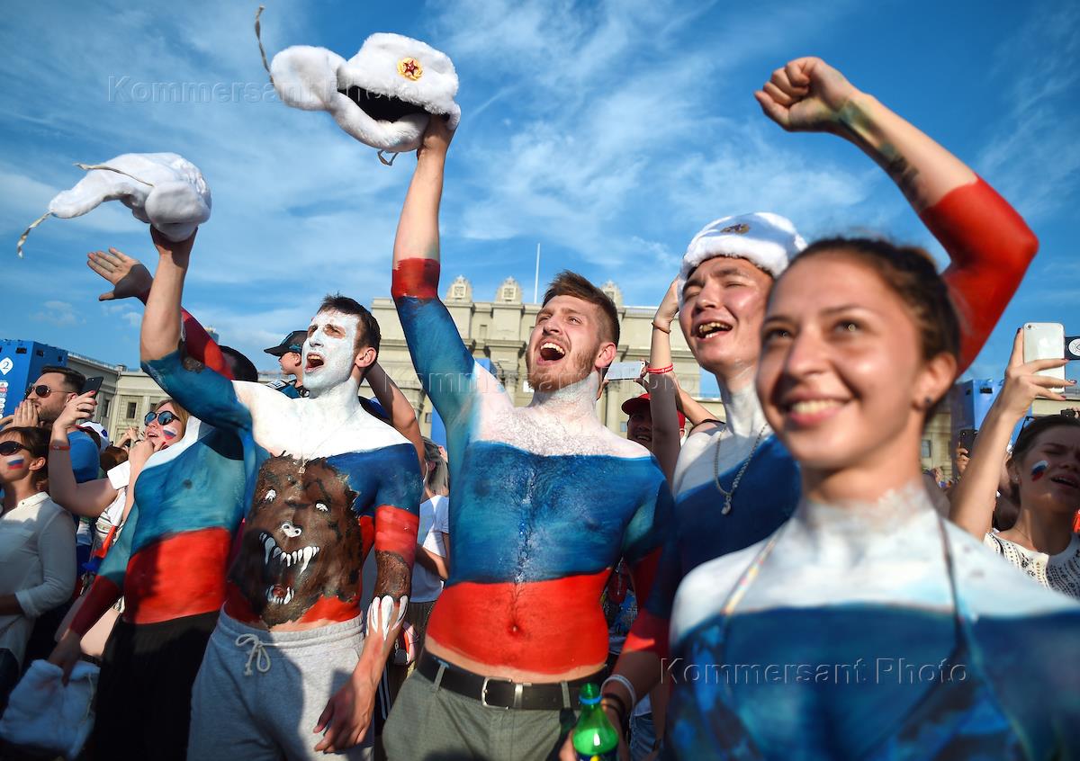 Чемпионат мира по футболу в России FIFA 2018. 1/8 финала. Болельщики смотрят матч между сборными Испании и России на территории фан-зоны в Самаре.