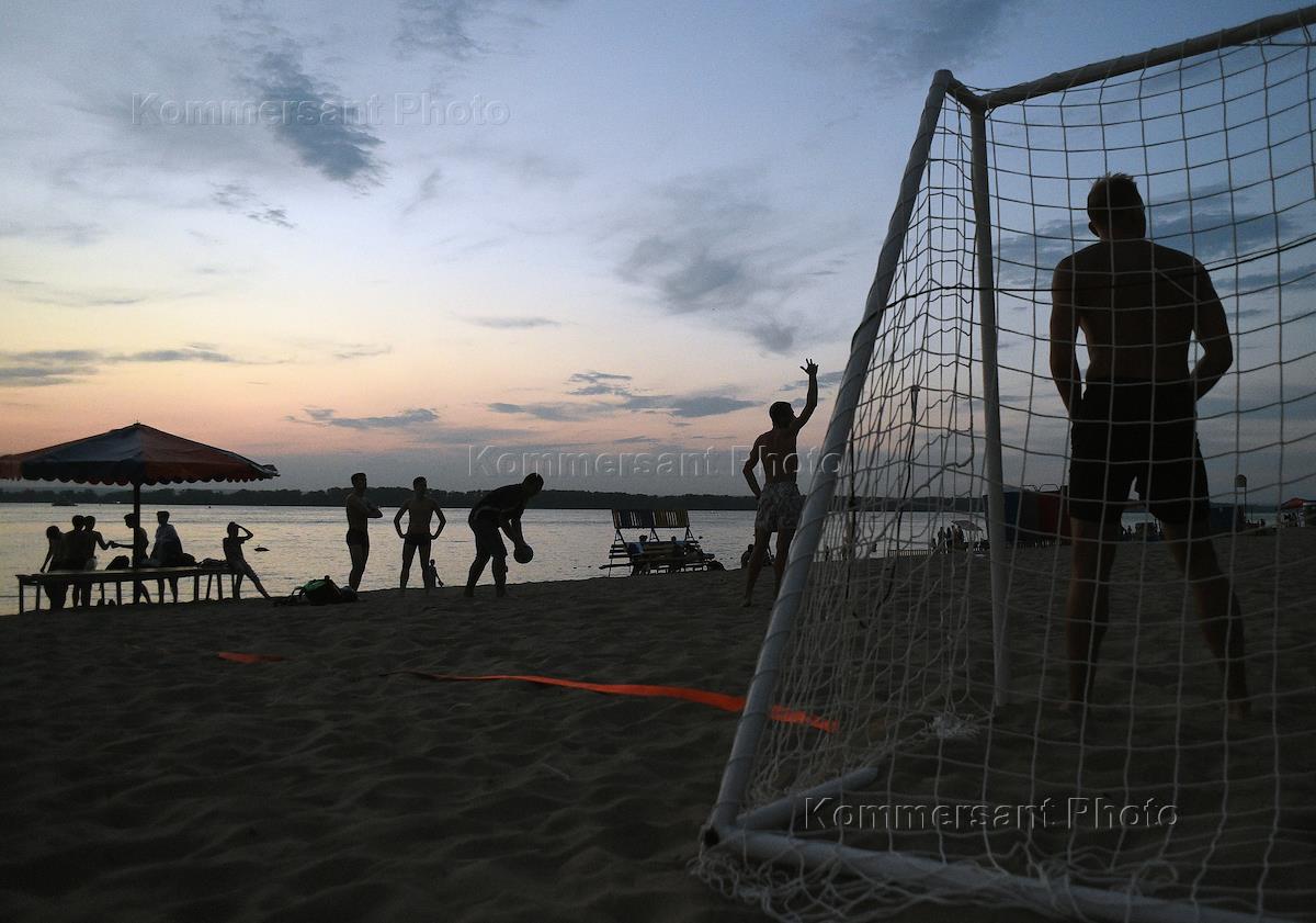 Виды Самары во время Чемпионата мира по футболу в России FIFA 2018. Футбол на пляже.