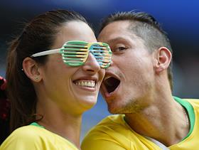 Чемпионат мира по футболу в России FIFA 2018. 1/8 финала. Матч между сборными Бразилии и Мексики на стадионе "Самара Арена". Бразильские болельщики во время матча.
