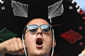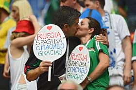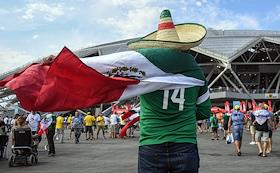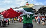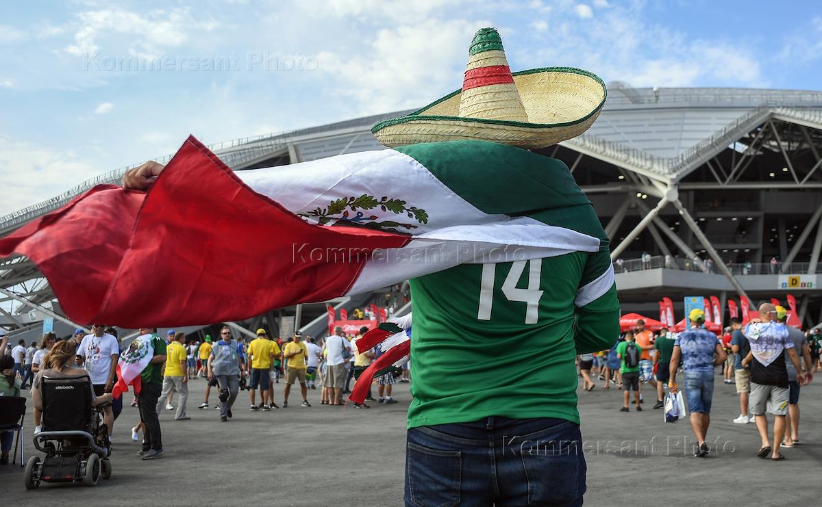 Чемпионат мира по футболу в России FIFA 2018. 1/8 финала. Матч между сборными командами Бразилии и Мексики на стадионе "Самара Арена". Болельщики сборной Мексики на трибуне во время матча.