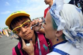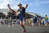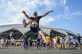 Чемпионат мира по футболу в России FIFA 2018. 1/8 финала. Матч между сборными командами Бразилии и Мексики на стадионе "Самара Арена". Болельщики перед началом матча.