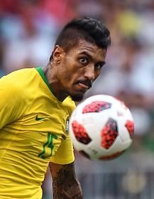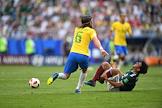 Чемпионат мира по футболу в России FIFA 2018. 1/8 финала. Матч между сборными командами Бразилии и Мексики на стадионе "Самара Арена". Игрок сборной Бразилии Паулиньо во время матча.