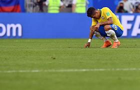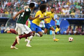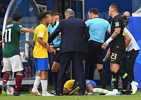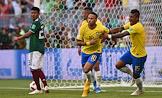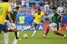 Чемпионат мира по футболу в России FIFA 2018. 1/8 финала. Матч между сборными Бразилии и Мексики на стадионе "Самара Арена". Игрок сборной Бразилии Неймар (справа) во время матча.