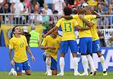 Чемпионат мира по футболу в России FIFA 2018. 1/8 финала. Матч между сборными командами Бразилии и Мексики на стадионе "Самара Арена". Игрок сборной Бразилии Неймар (в центре) во время матча.
