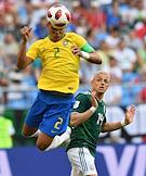 Чемпионат мира по футболу в России FIFA 2018. 1/8 финала. Матч между сборными Бразилии и Мексики на стадионе "Самара Арена". Игрок сборной Бразилии Фагнер во время матча.