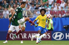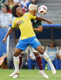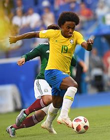 Чемпионат мира по футболу в России FIFA 2018. 1/8 финала. Матч между сборными Бразилии и Мексики на стадионе "Самара Арена". Игрок сборной Бразилии Виллиан (слева) во время матча.