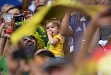 Чемпионат мира по футболу в России FIFA 2018. 1/8 финала. Матч между сборными Бразилии и Мексики на стадионе "Самара Арена". Бразильские болельщики во время матча.