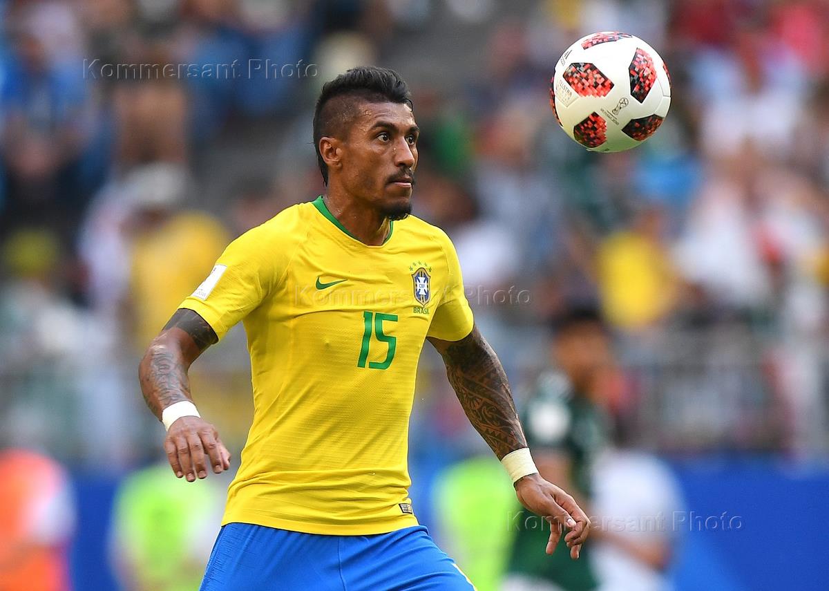 Чемпионат мира по футболу в России FIFA 2018. 1/8 финала. Матч между сборными командами Бразилии и Мексики на стадионе "Самара Арена". Игрок сборной Бразилии Паулиньо во время матча.
