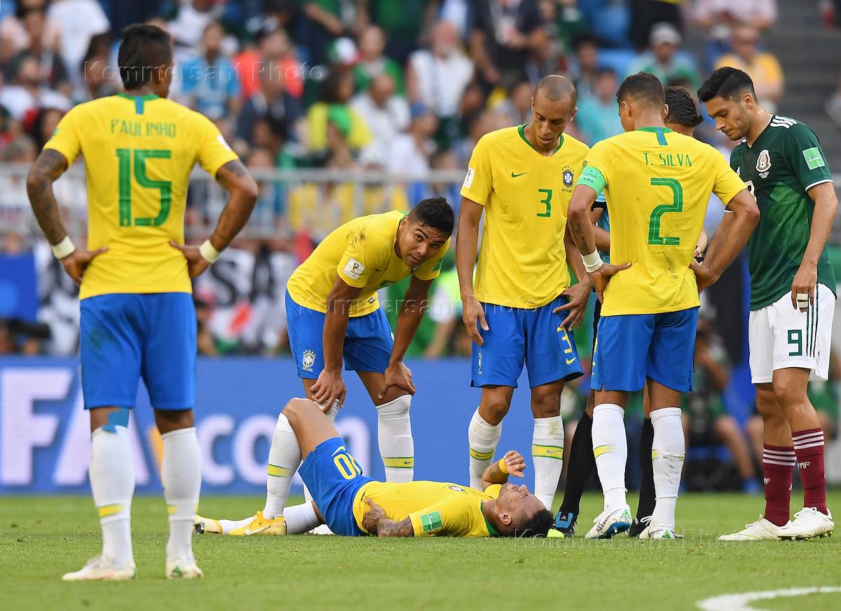 Чемпионат мира по футболу в России FIFA 2018. 1/8 финала. Матч между сборными Бразилии и Мексики на стадионе "Самара Арена". Игрок сборной Бразилии Неймар (справа) во время матча.