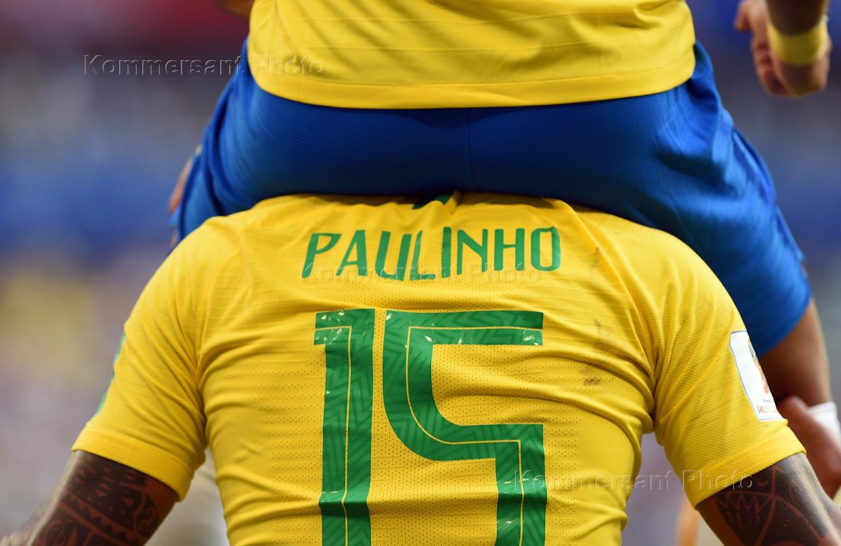 Чемпионат мира по футболу в России FIFA 2018. 1/8 финала. Матч между сборными командами Бразилии и Мексики на стадионе "Самара Арена". Игрок сборной Бразилии Паулиньо во время матча.