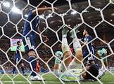 Чемпионат мира по футболу в России FIFA 2018. 1/8 финала. Матч между сборными Японии и Бельгии на стадионе "Ростов Арена". Вратарь сборной Японии Эйдзи Кавасима (в центре) во время матча.