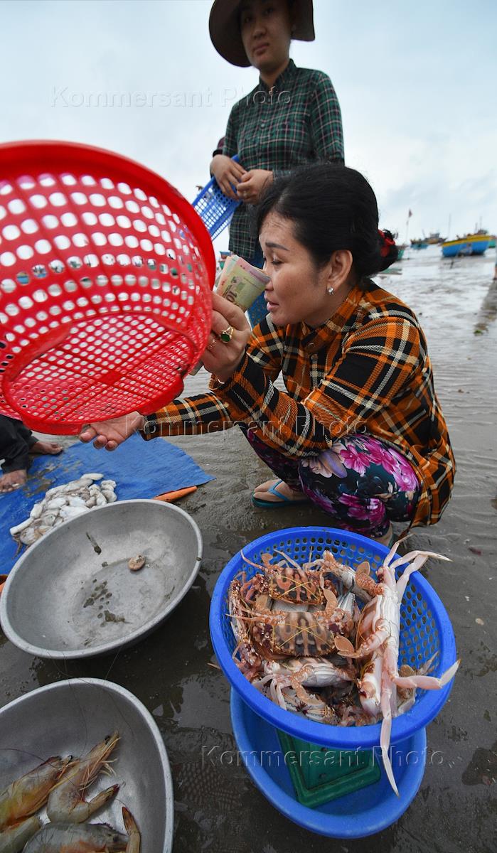 Рыбацкая деревня в Муйне, южновьетнамской провинции Биньтхуан (Фантьет). Песчаный берег с остатками ракушек.