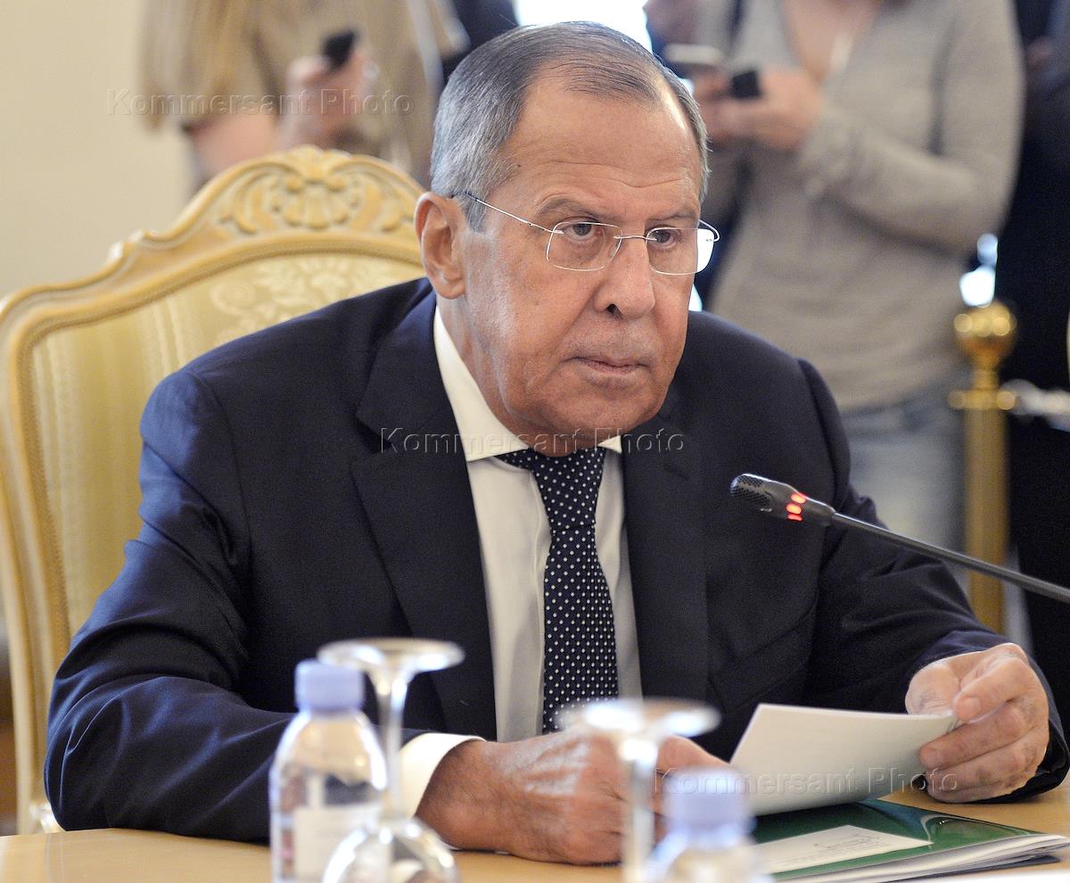 Министр иностранных дел России Сергей Лавров во время встречи с министром иностранных дел и по делам эмигрантов Иорданского Хашимитского Королевства Айманом ас-Сафади в Доме приемов МИД России.