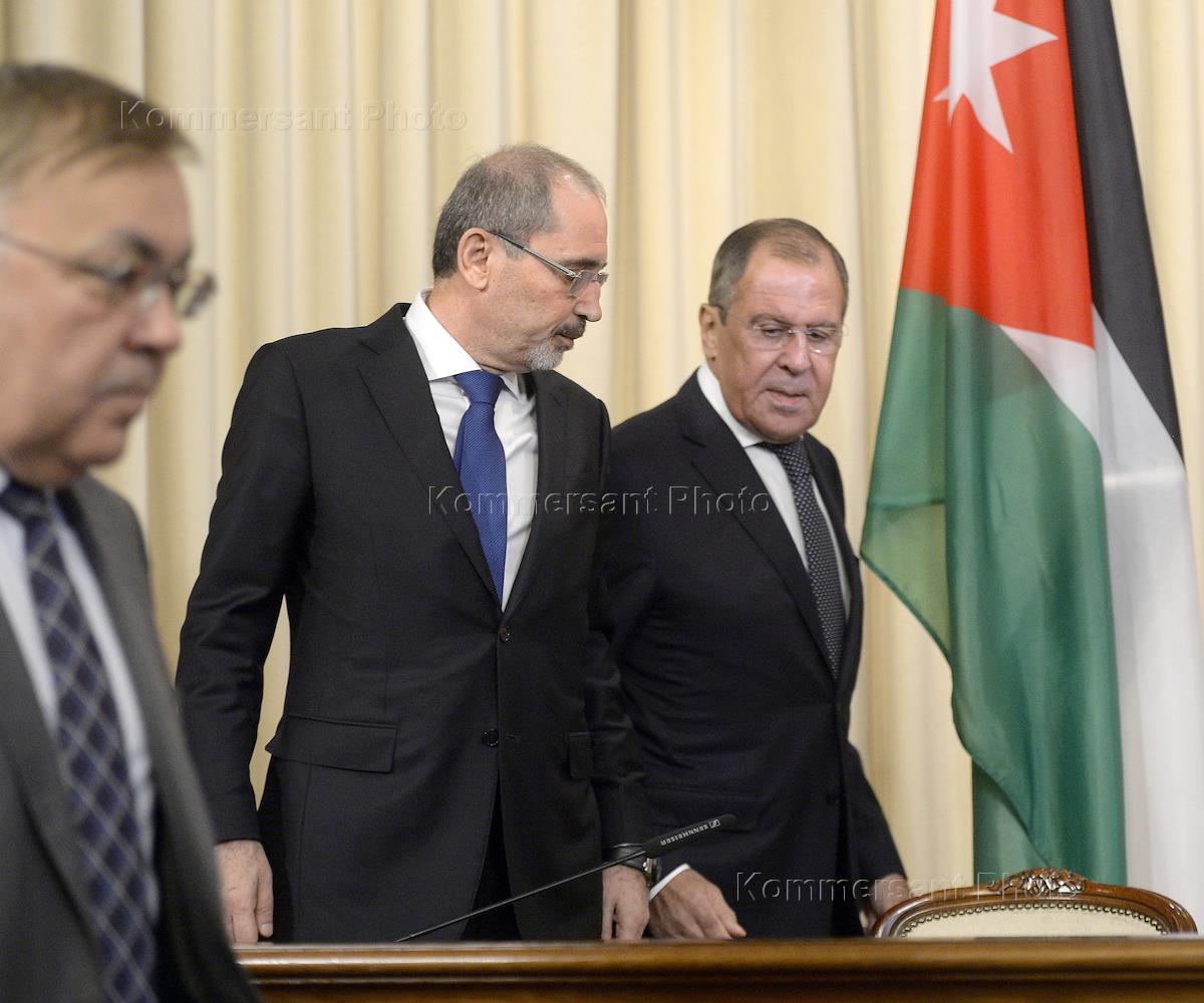 Министр иностранных дел и по делам эмигрантов Иорданского Хашимитского Королевства Айман ас-Сафади (слева) и министр иностранных дел России Сергей Лавров (справа) перед началом встречи в Доме приемов МИД России.