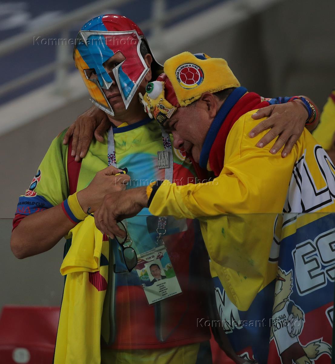 Чемпионат мира по футболу в России FIFA 2018. 1/8 финала. Матч между сборными Колумбии и Англии прошел на стадионе "Спартак". Болельщики сборной Колумбии перед началом матча.