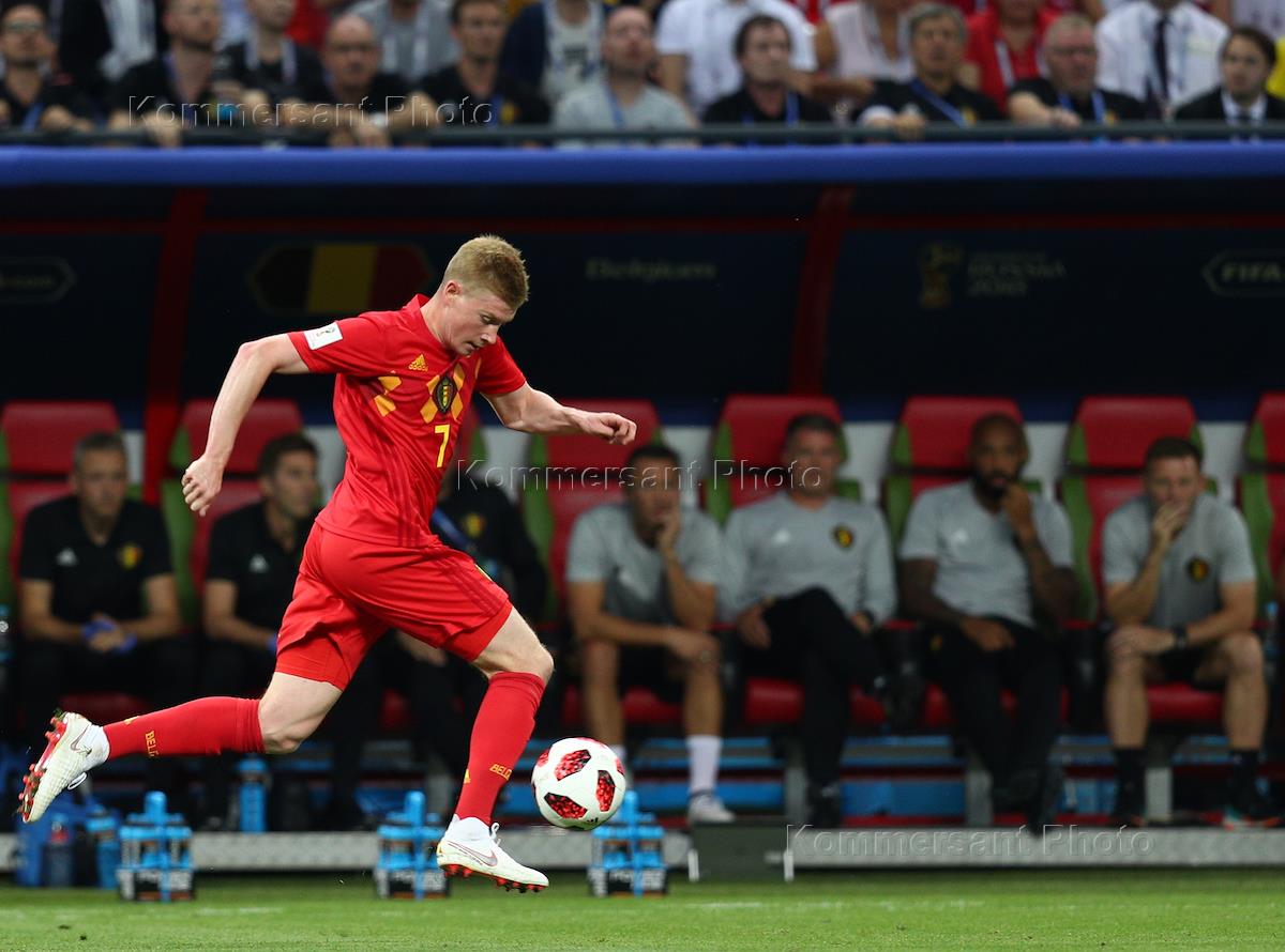 Чемпионат мира по футболу в России FIFA-2018. 1/4 финала. Матч между сборными Бразилии и Бельгии на стадионе "Казань Арена". Игрок сборной Бельгии Кевин Де Брейне во время матча.