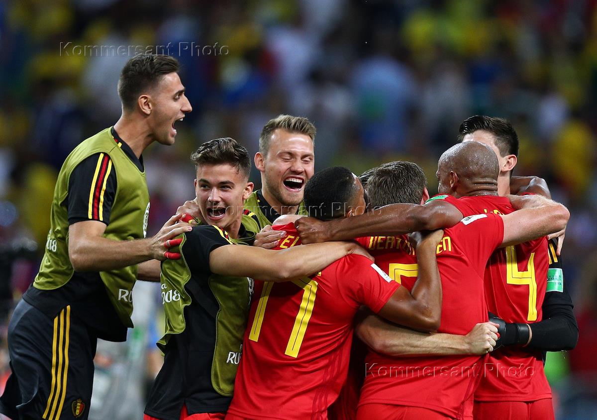 Чемпионат мира по футболу в России FIFA-2018. 1/4 финала. Матч между сборными Бразилии и Бельгии на стадионе "Казань Арена". Игроки сборной Бельгии после окончания матча.