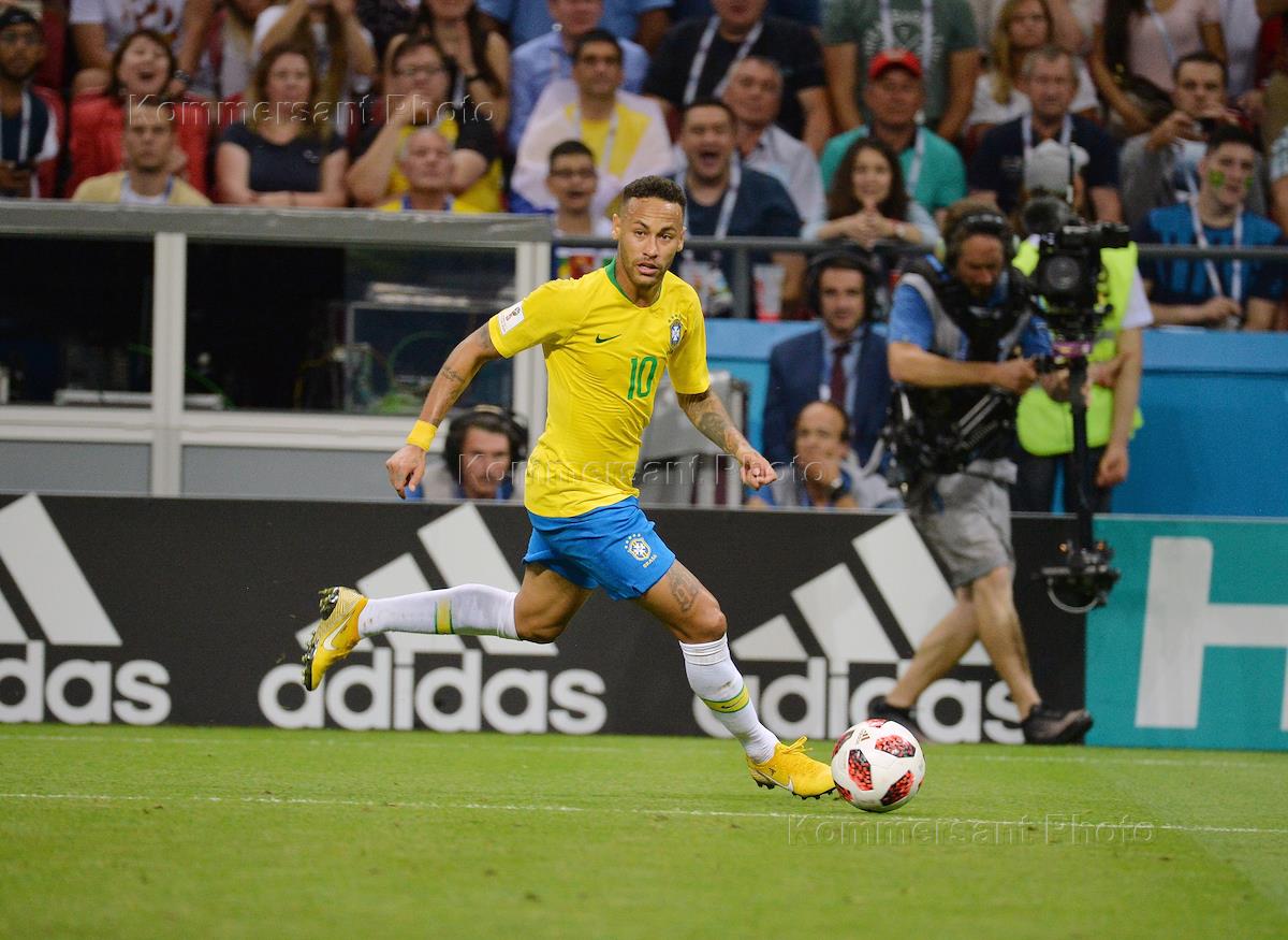 Чемпионат мира по футболу в России FIFA-2018. 1/4 финала. Матч между сборными Бразилии и Бельгии на стадионе "Казань Арена". Игрок сборной Бразилии Неймар во время матча.