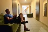 Жанровая фотография. Хостел "Старт" на Вишневой улице. Приезжий в холле хостела.
