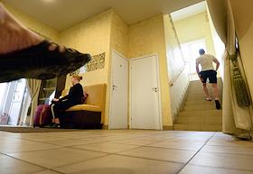 Жанровая фотография. Хостел "Старт" на Вишневой улице. Постоялец хостела в коридоре.
