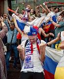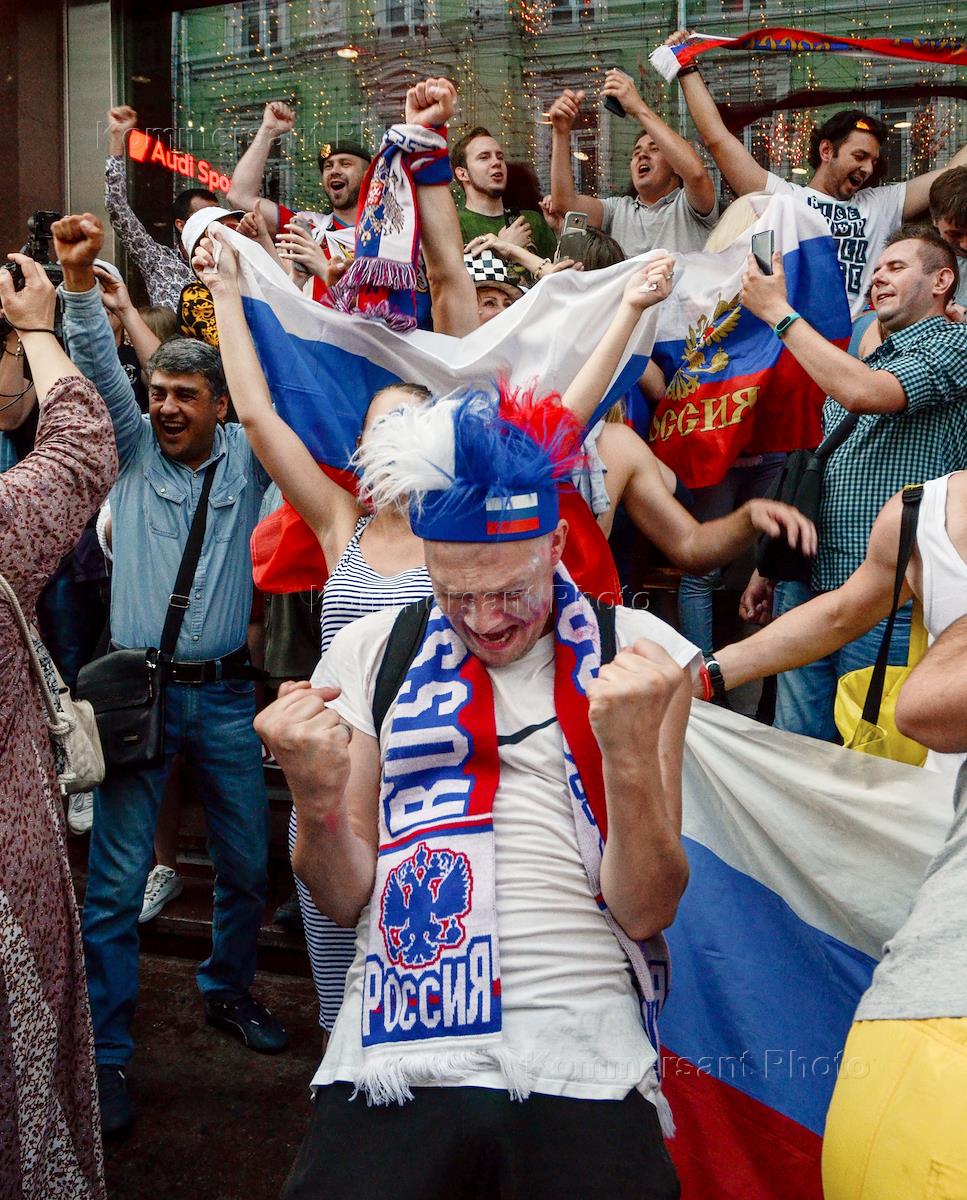 Чемпионат мира по футболу в России FIFA-2018. Российские болельщики празднуют победу сборной России над сборной Испании.