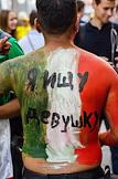 Чемпионат мира по футболу в России FIFA-2018. Российский болельщик на Никольской улице.