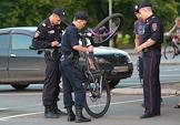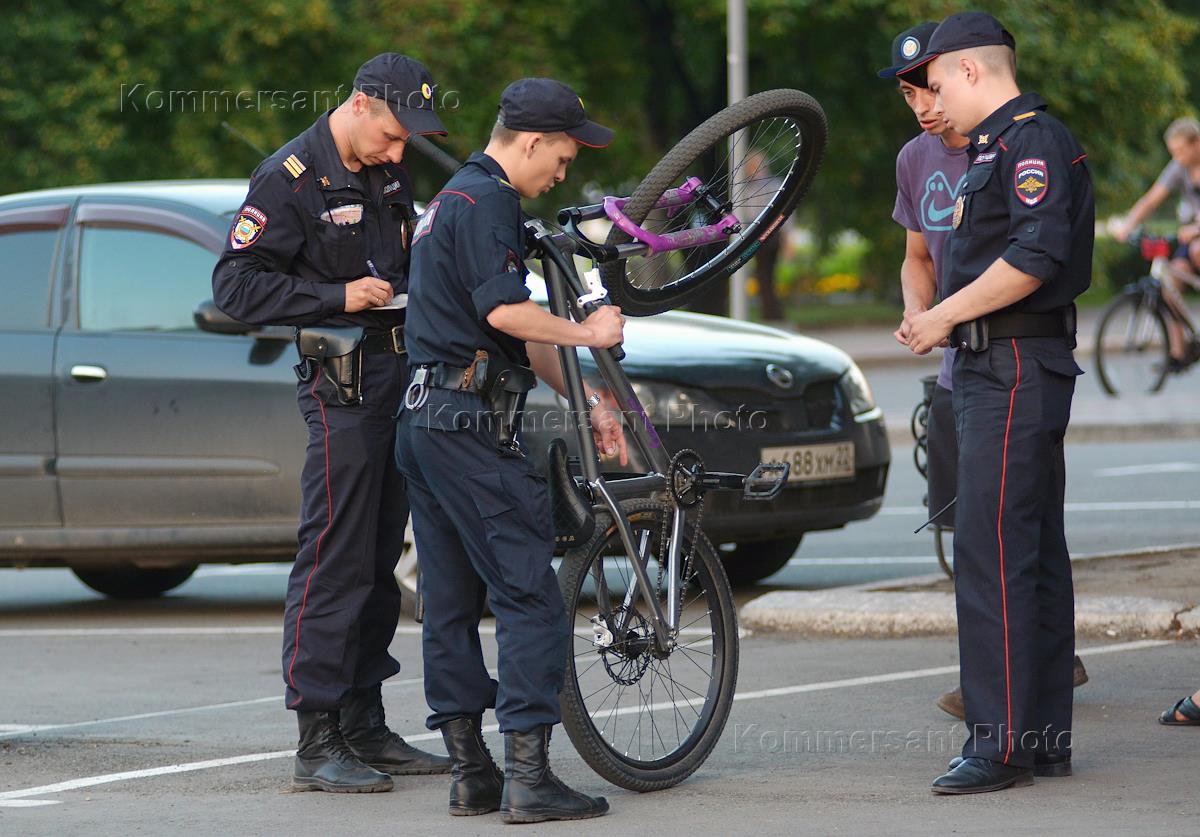 Сотрудники полиции проверяют велосипеды на предмет угона.