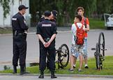 Сотрудники полиции во время проверки велосипедов на предмет угона.