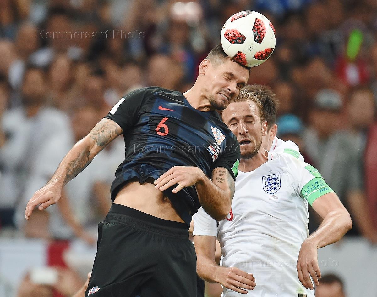 Чемпионат мира по футболу в России FIFA 2018. Полуфинал. Матч между сборными командами Хорватии и Англии на стадионе "Лужники". Игрок сборной Хорватии Домагой Вида во время матча.