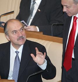 Заместитель председателя Государственной Думы России Владимир Пехтин (слева) на очередном думском заседании.