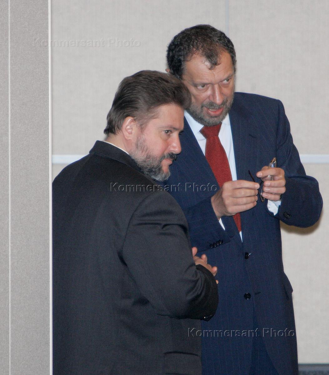 Председатель Комитета Государственной Думы России по экономической политике, предпринимательству и туризму Валерий Драганов (справа) и член Комитета Государственной Думы России по бюджету и налогам Михаил Задорнов (слева) на очередном думском заседании.