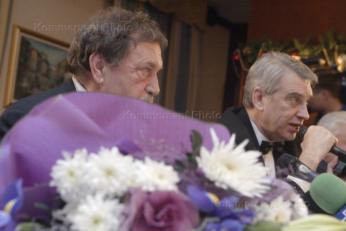 Литературная премия "Букер - Открытая Россия" 2004 присуждена писателю Василию Аксенову (слева) за его роман "Вольтерьянцы и вольтерьянки". Писатель Василий Аксенов на церемонии вручения премии в зале "Есенин" гостиницы "Золотое кольцо".