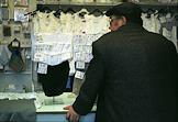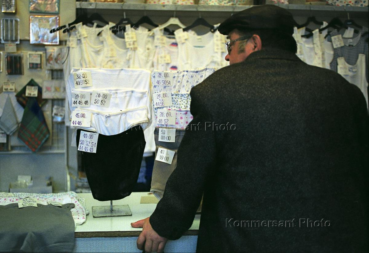 A customer looks at underwear displayed in a clothes store.
