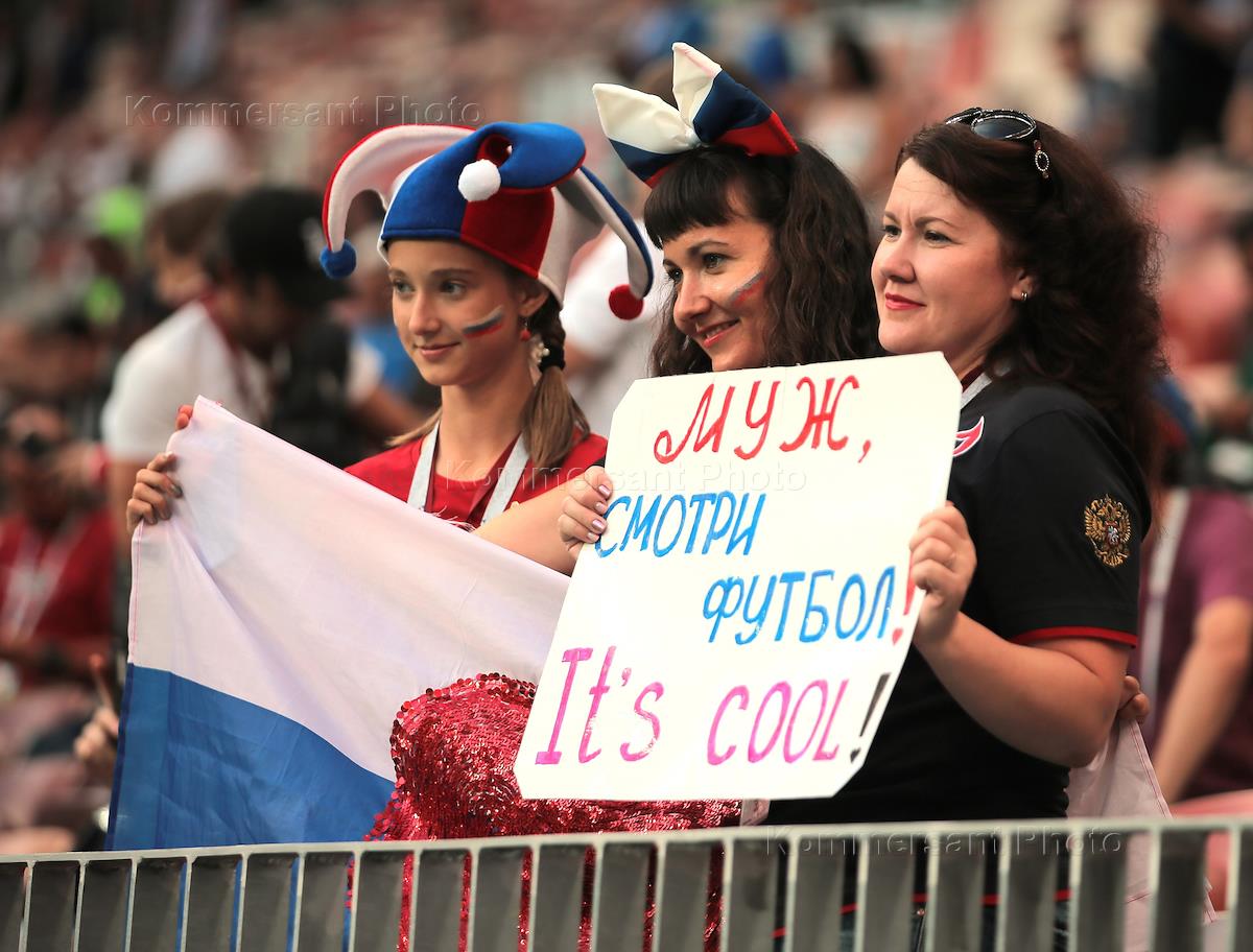 Чемпионат мира по футболу в России FIFA 2018. Полуфинал. Матч между сборными Хорватии и Англии прошел на стадионе "Лужники". Болельщики перед началом матча.