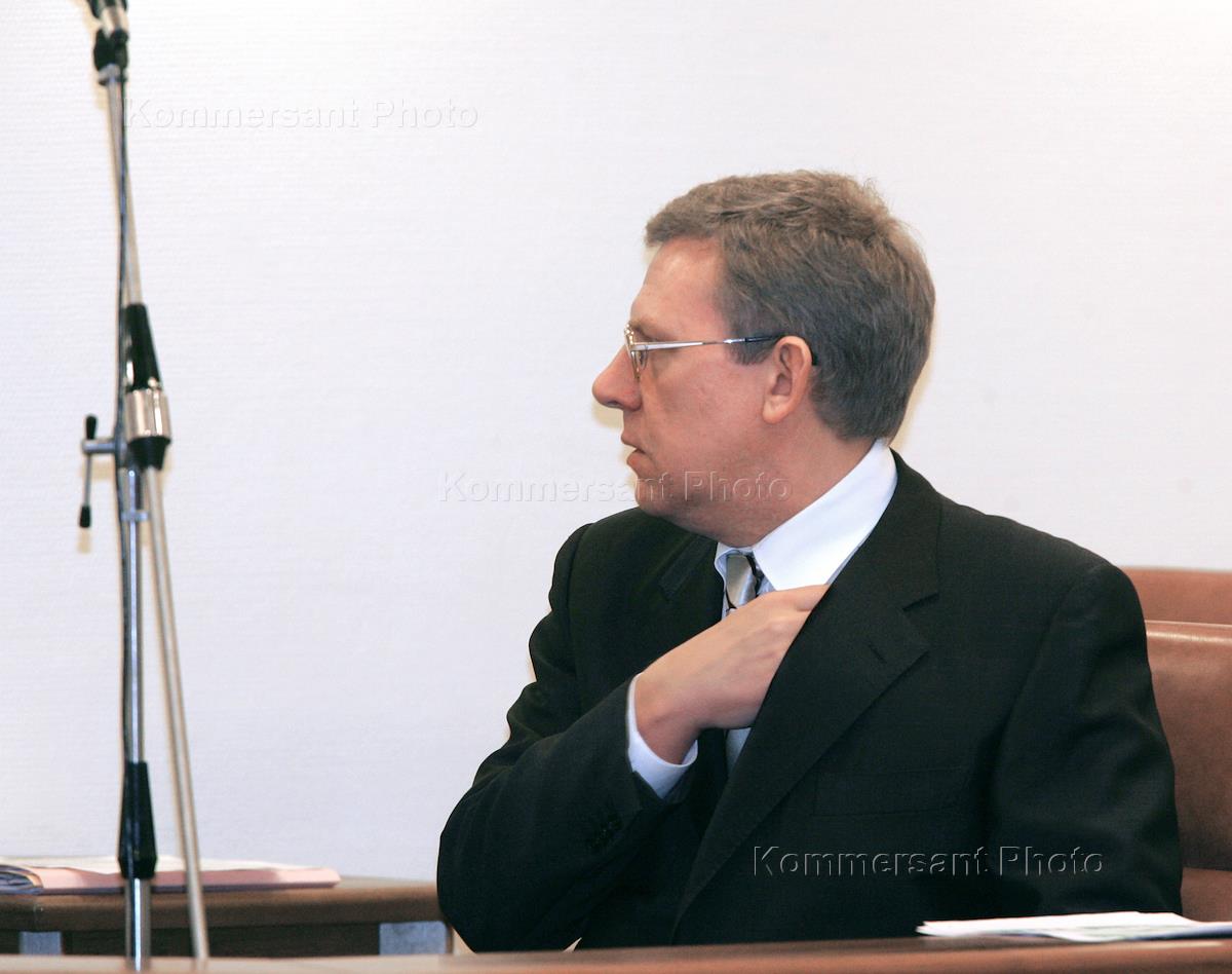 Представитель Президента России в Совете Федерации (СФ) Александр Котенков (слева) и министр финансов России Алексей Кудрин (справа) на очередном заседании Совета Федерации.