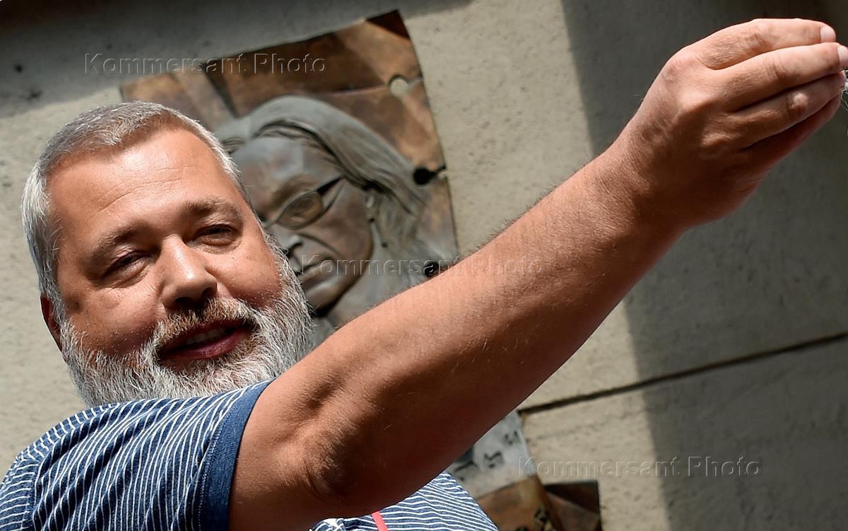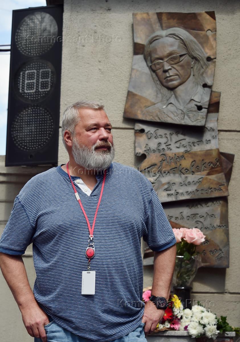 Церемония открытия "Сада памяти" журналистки Анны Политковской у редакции "Новой газеты". Журналист Дмитрий Муратов во время церемонии.