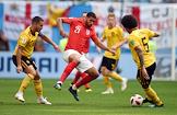 Чемпионат мира по футболу в России FIFA 2018. Матч за 3-е место между сборными командами Бельгии и Англии на стадионе "Санкт-Петербург". Игрок сборной Бельгии Эден Азар (слева) и игрок сборной Англии Рубен Лофтус-Чик (в центре) во время матча.