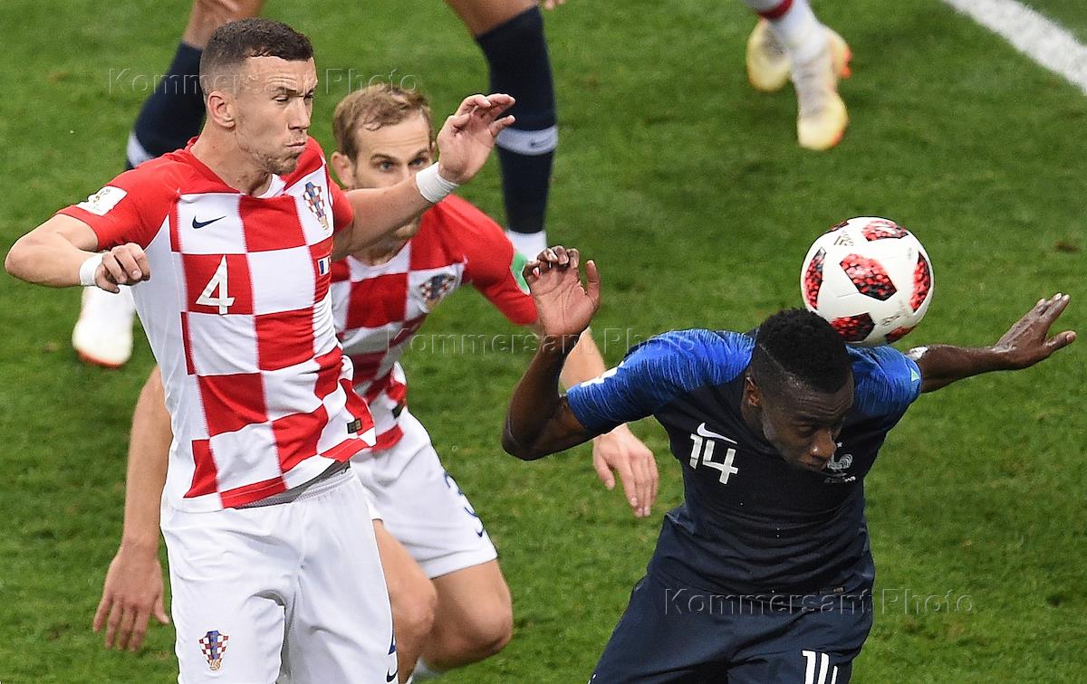 Чемпионат мира по футболу в России FIFA 2018. Финал. Матч между сборными Франции и Хорватии на стадионе "Лужники". Игрок сборной Франции Блез Матюиди (справа) во время матча.