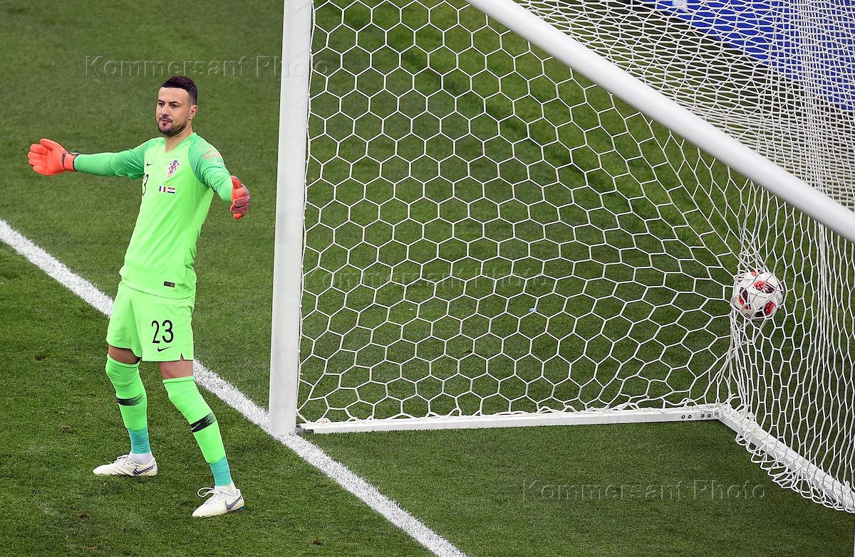 Чемпионат мира по футболу в России FIFA 2018. Финал. Матч между сборными Франции и Хорватии на стадионе "Лужники". Вратарь сборной Хорватии Даниэль Субашич во время матча.