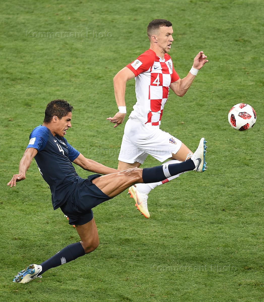FIFA World Cup 2018 Russia. Final. France v Croatia at Luzhniki stadium. French football player Raphael Varane (left) during the match.