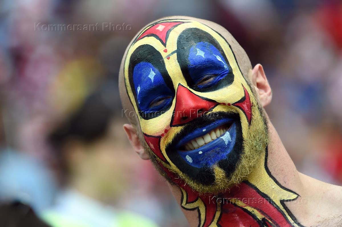 Чемпионат мира по футболу в России FIFA 2018. Финал. Матч между сборными Франции и Хорватии на стадионе "Лужники". Хорватские болельщики перед началом матча.