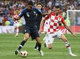 Чемпионат мира по футболу в России FIFA 2018. Финал. Матч между сборными Франции и Хорватии на стадионе "Лужники". Игрок сборной Франции Блез Матюиди (слева) во время матча.