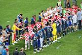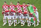 Чемпионат мира по футболу в России FIFA 2018. Финал. Матч между сборными командами Франции и Хорватии на стадионе "Лужники". Игроки сборной Хорватии перед началом матча.