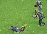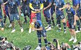 Чемпионат мира по футболу в России FIFA 2018. Финал. Матч между сборными командами Франции и Хорватии на стадионе "Лужники". Церемония награждения победителей. Игрок сборной Франции после церемонии.