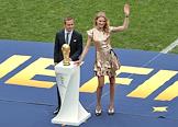 Чемпионат мира по футболу в России FIFA 2018. Церемония закрытия на стадионе "Лужники". Российская супермодель, основатель Фонда "Обнаженные сердца" Наталья Водянова (справа) и чемпиона мира 2014 года в составе сборной германии Филипп Лам (слева) во время церемонии.